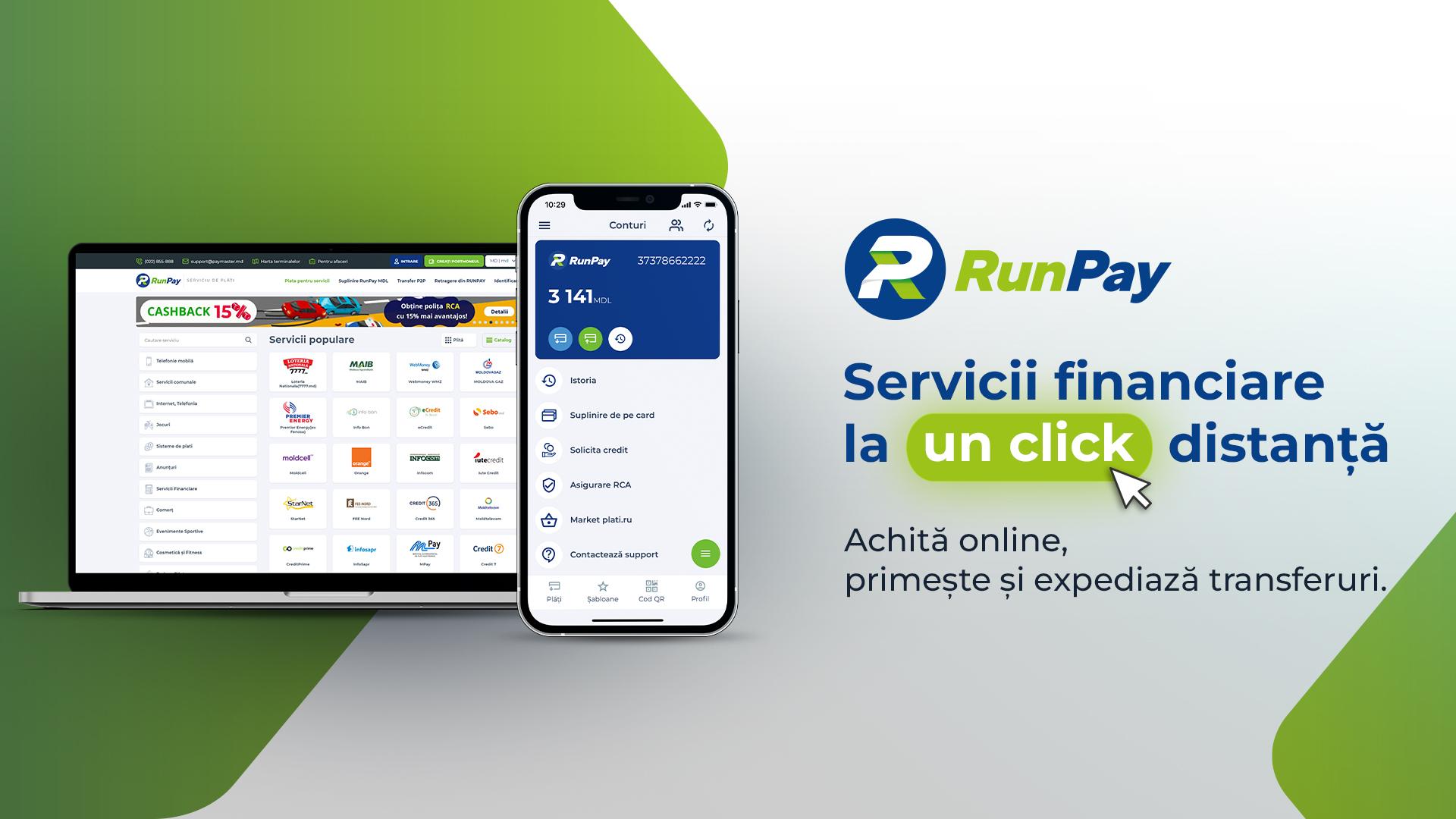 achitări online pe site https://my.runpay.com sau prin intermediul aplicației mobile RunPay